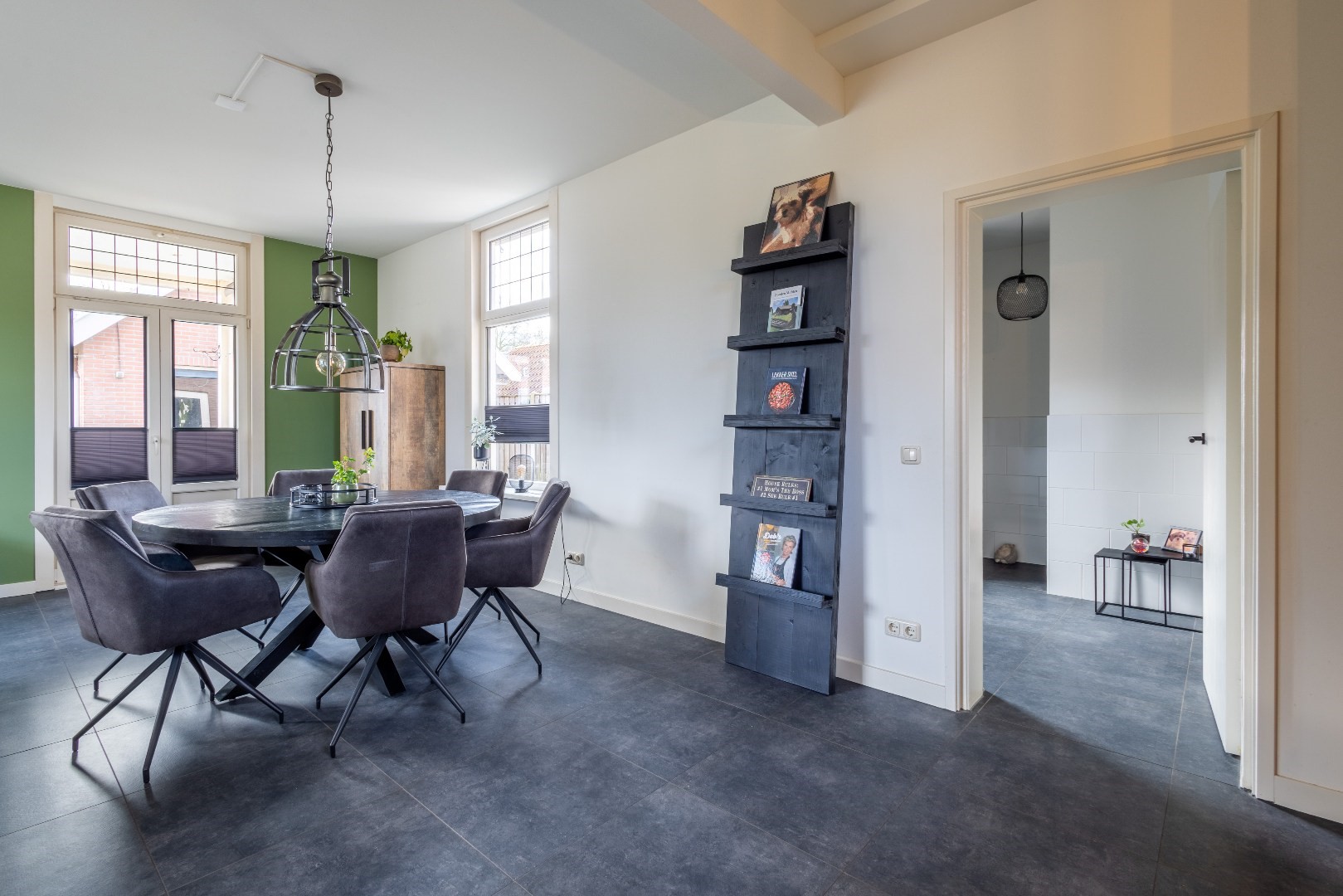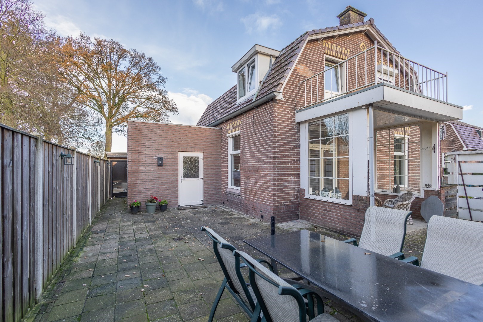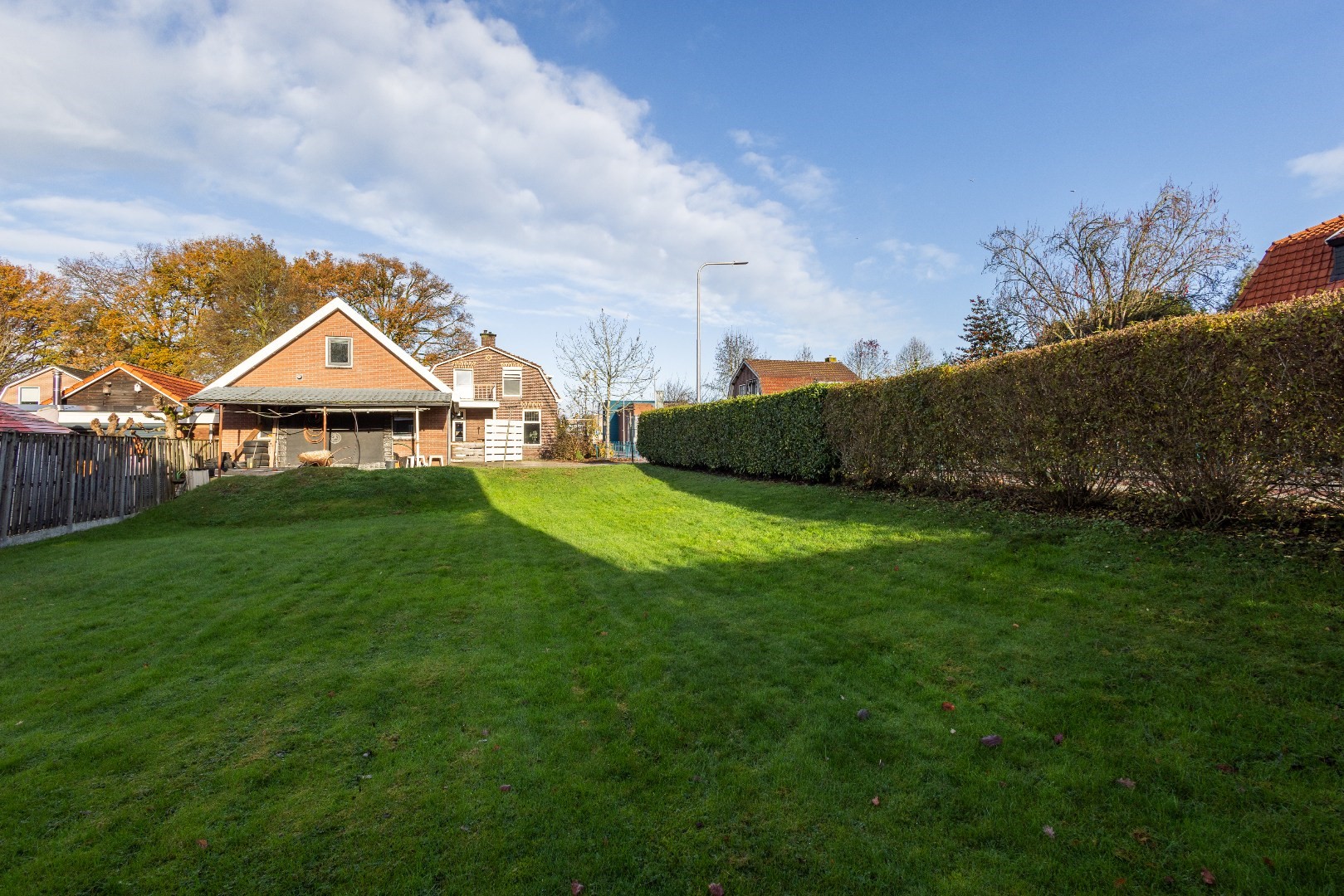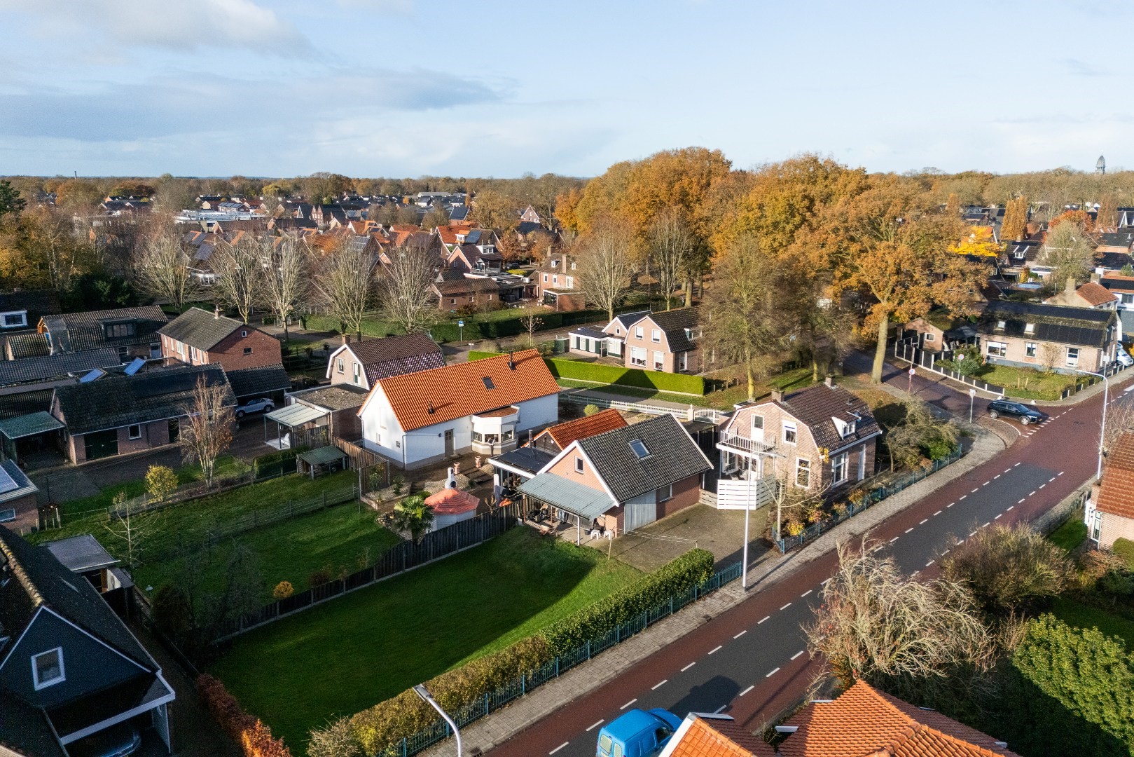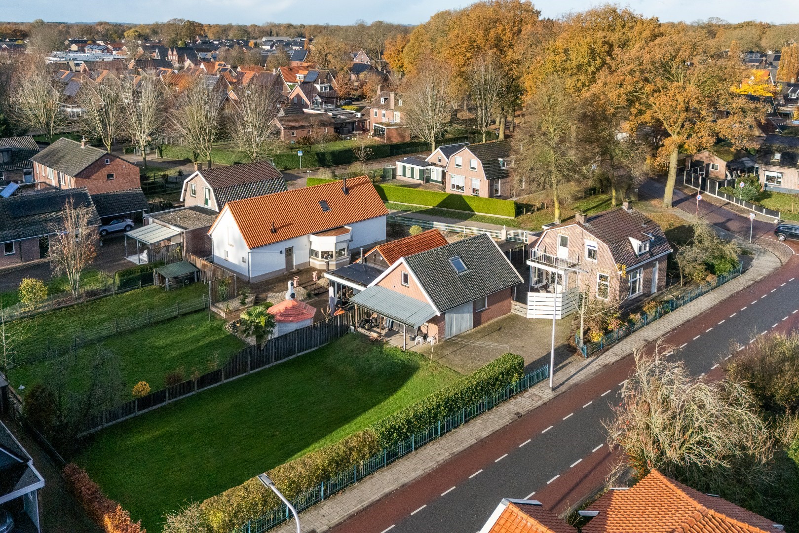 Een karakteristiek en grotendeels gemoderniseerd vrijstaand huis voorzien van grote vrijstaande stenen garage, overkapping en diepe tuin, gelegen op een perceel van maar liefst 862 m2 eigen grond. De grote garage heeft een afmeting van 6,00 x 8.20 meter en is voorzien van een vaste trap naar de bovengelegen verdieping met daar een geheel verwarmde en afgewerkte hobby- c.q. ontspanningsruimte. Gelegen aan de buitenrand van het dorp en bijna aan het “Herman Jansen park” met daarin o.a. een prachtig Hertenkamp.