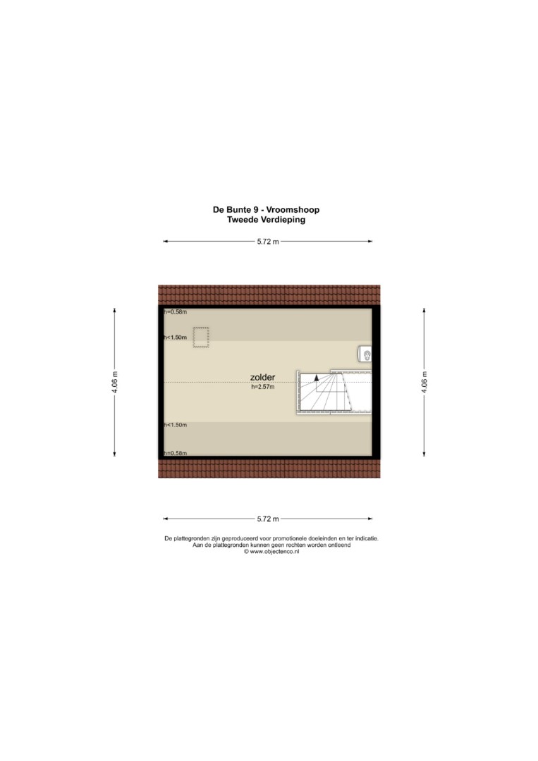 2e verdieping: bergruimte met mogelijkheid voor een extra slaapvertrek of werkkamer.