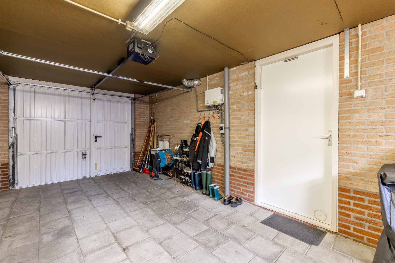 Begane grond: entrée/hal met meterkast, trapopgang naar de 1e verdieping en moderne toiletruimte; lichte en ruime l-vormige woonkamer voorzien van erker, laminaatvloer en schuifpui naar het terras; open keuken voorzien van moderne hoekopgestelde inbouwkeuken; geïsoleerde bijkeuken met achteringang en binnendoor naar de garage; garage voorzien van elektrisch bedienbare garagedeur.