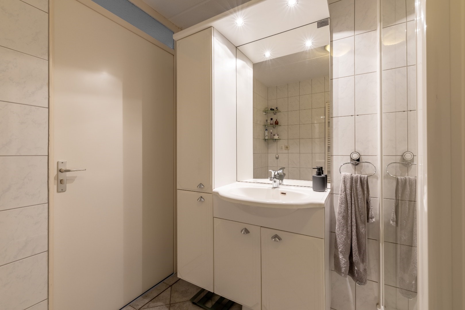 De complete badkamer (1998) is voorzien van een douche met cabine, toilet, designradiator en wastafelmeubel.