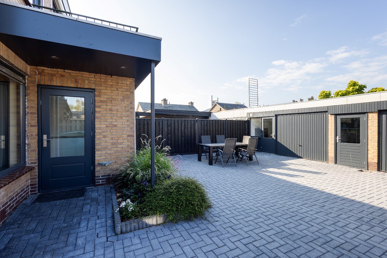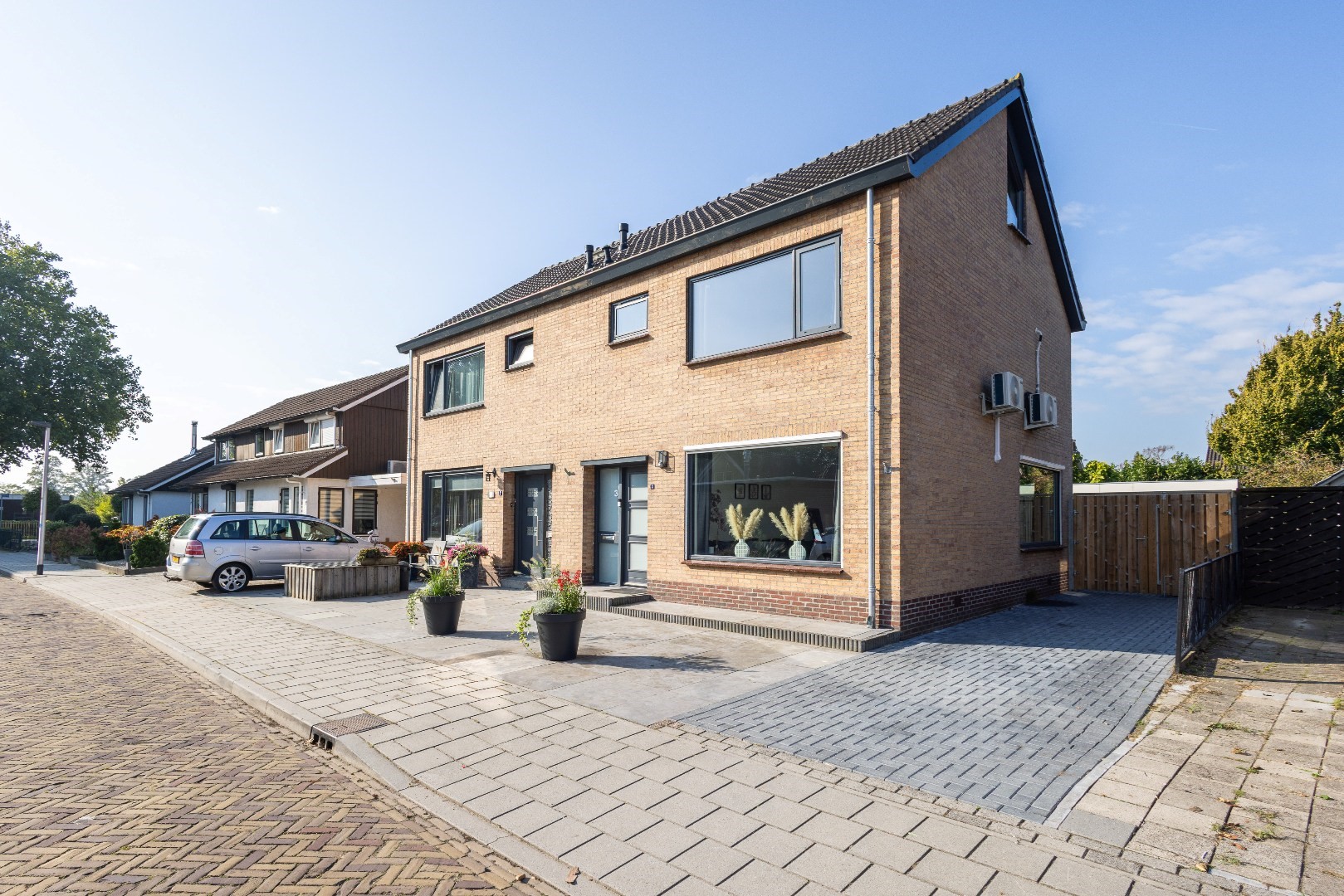 Ruime en volledig gemoderniseerde twee-onder-een-kapwoning met twee geschakelde garages, centraal gelegen in het dorp op kavel van 257 eigen grond.