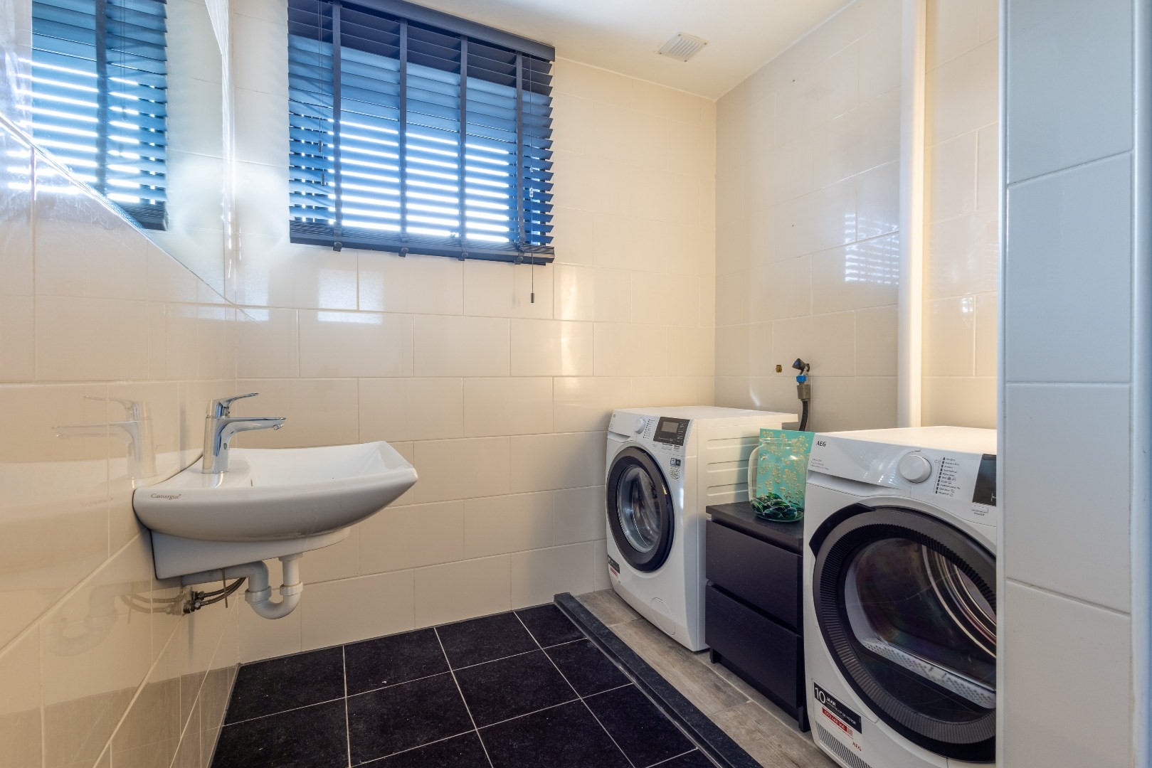1e verdieping: ruime overloop voorzien van vaste kast; 2 zeer ruime en moderne slaapkamers waarvan 1 met toegang tot balkon; moderne badkamer; separate toiletruimte; wasruimte voorzien van was- en drogeraansluiting en trapopgang naar de 2e verdieping