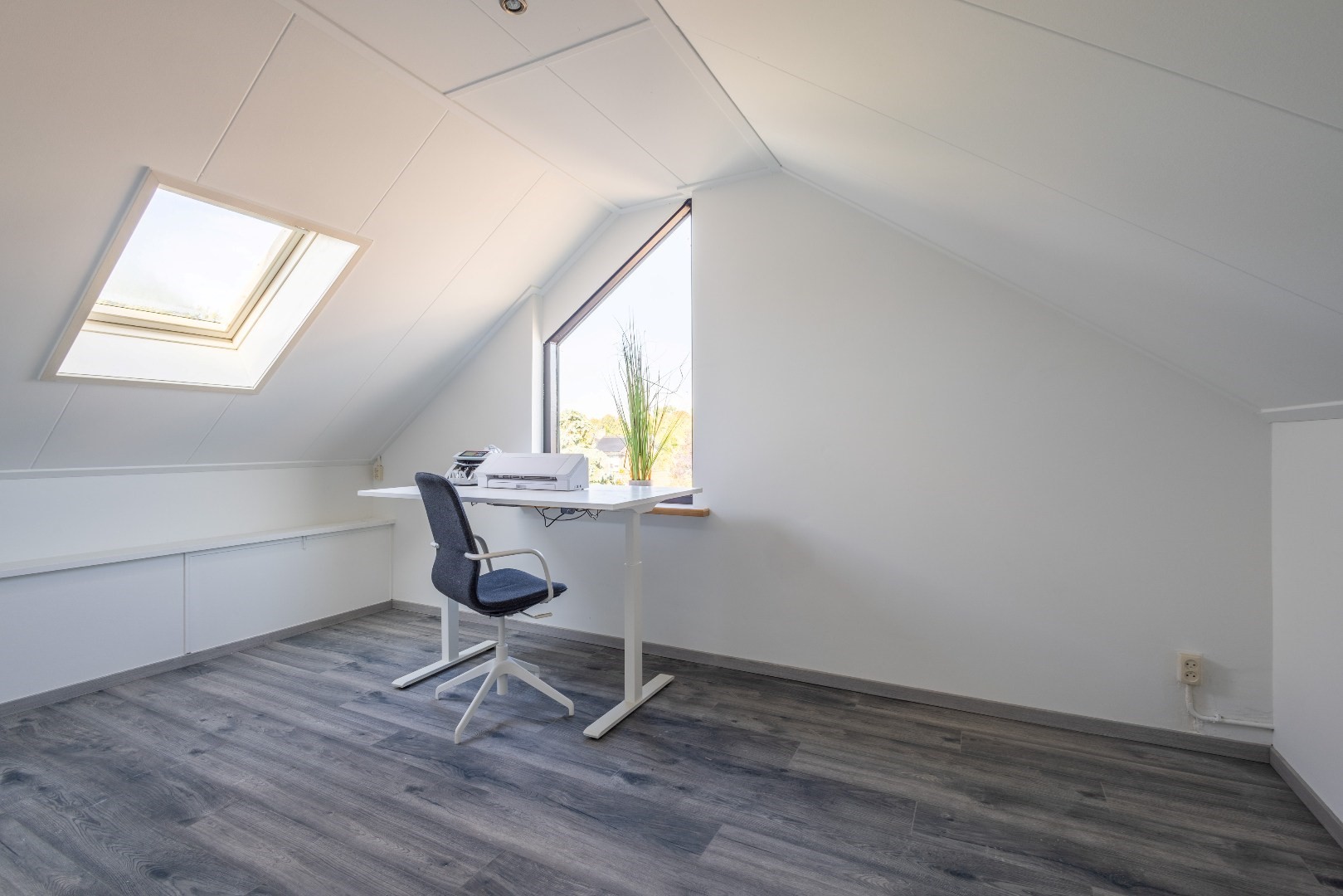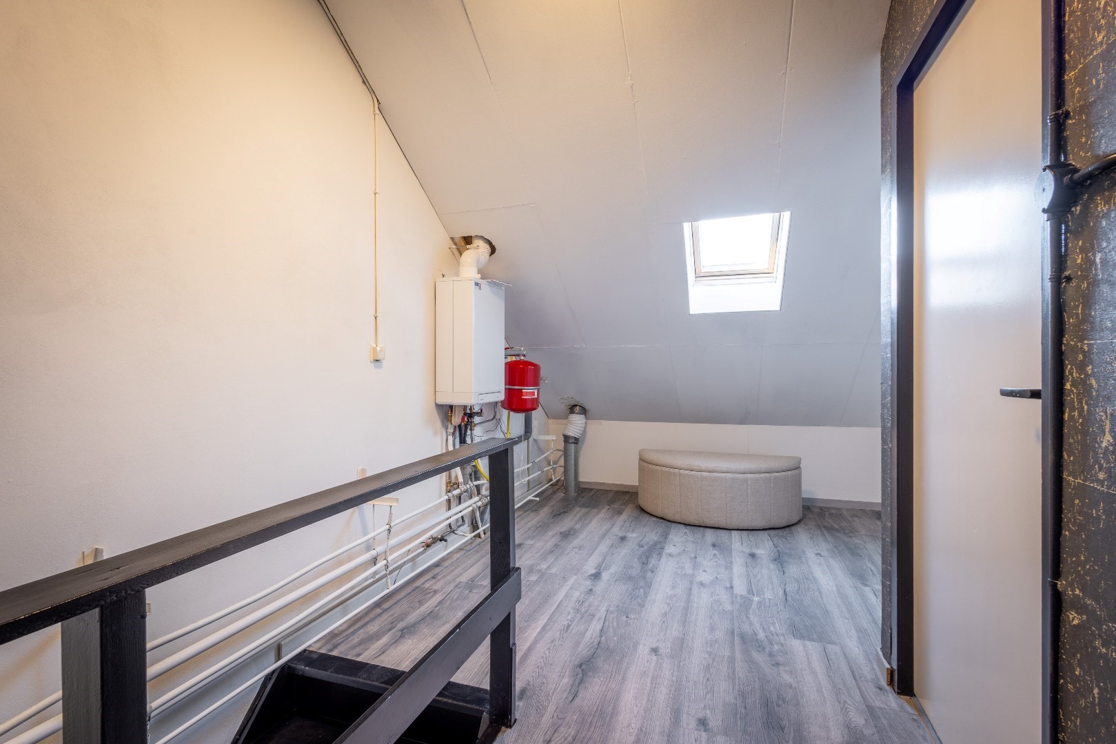 2e verdieping: ruime overloop met c.v. opstelling en bergruimte; 3e slaap-/werkkamer.
