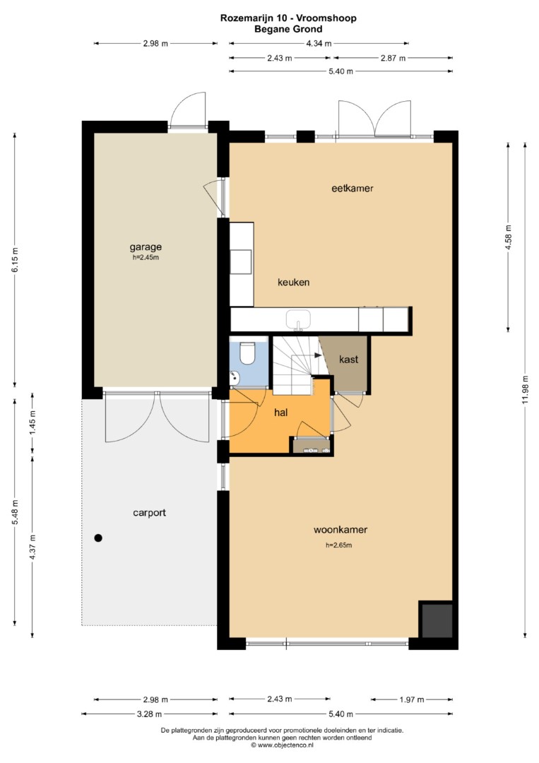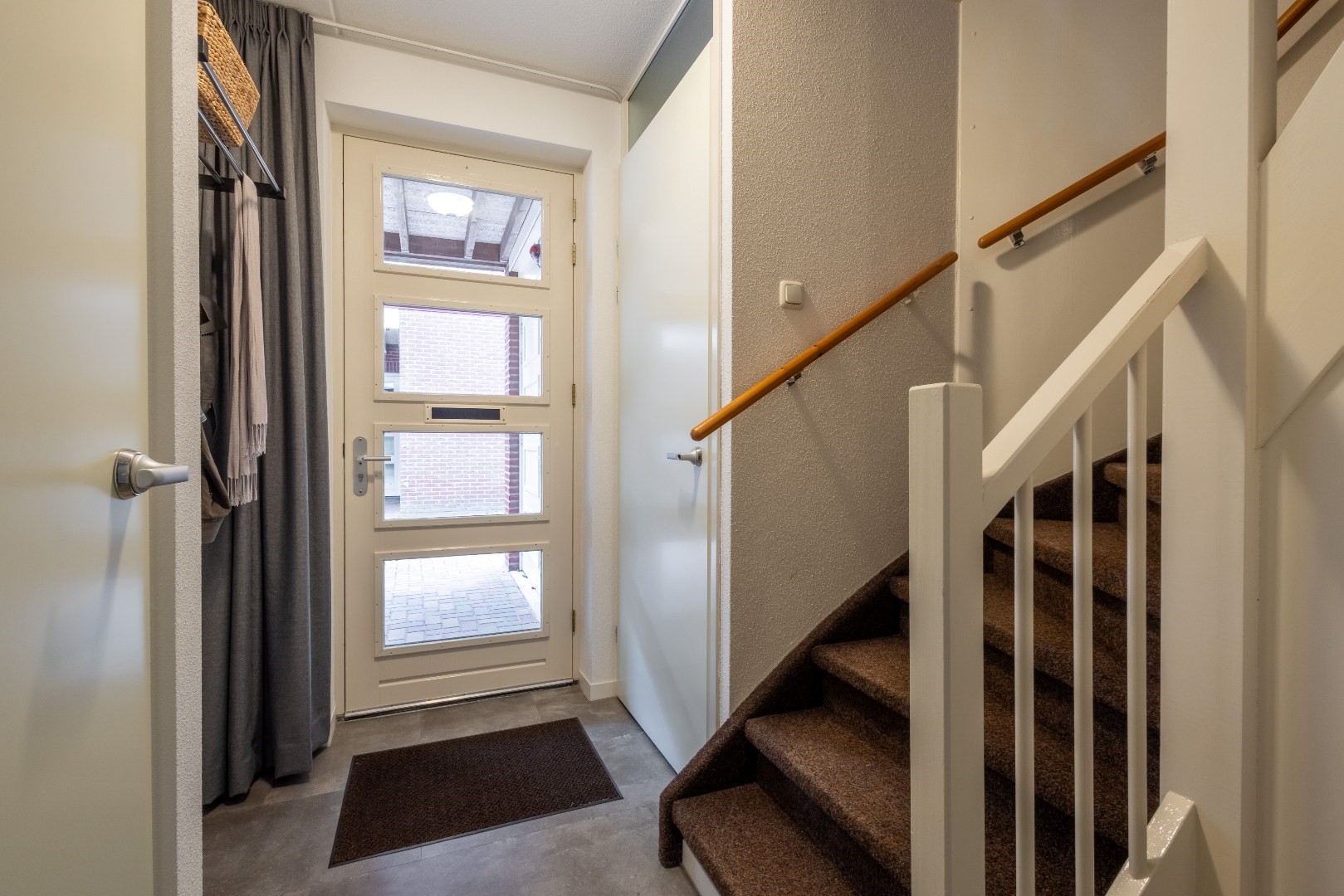 Begane grond: entrée/hal voorzien van meterkast, trapopgang naar de 1e verdieping en moderne toiletruimte; ruime woonkamer voorzien van erker, PVC vloer en vaste kast; half open keuken voorzien van zo goed als nieuwe, moderne en hoekopgestelde inbouwkeuken, openslaande deuren naar het terras en binnendoor naar de garage; garage met carport.