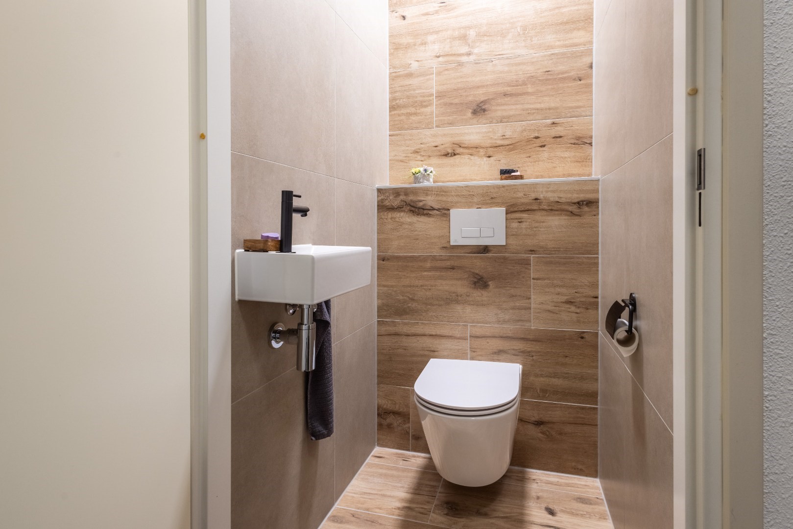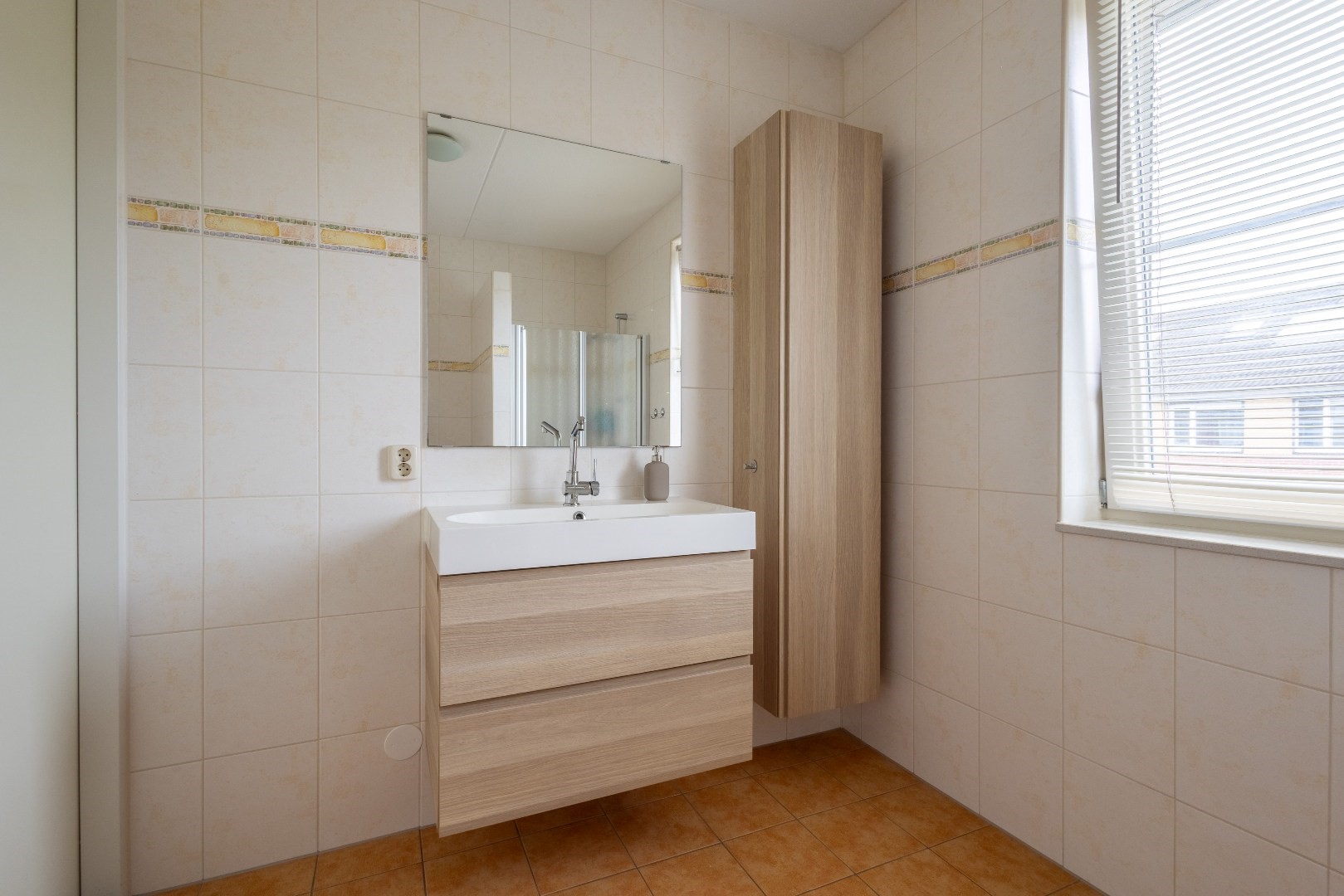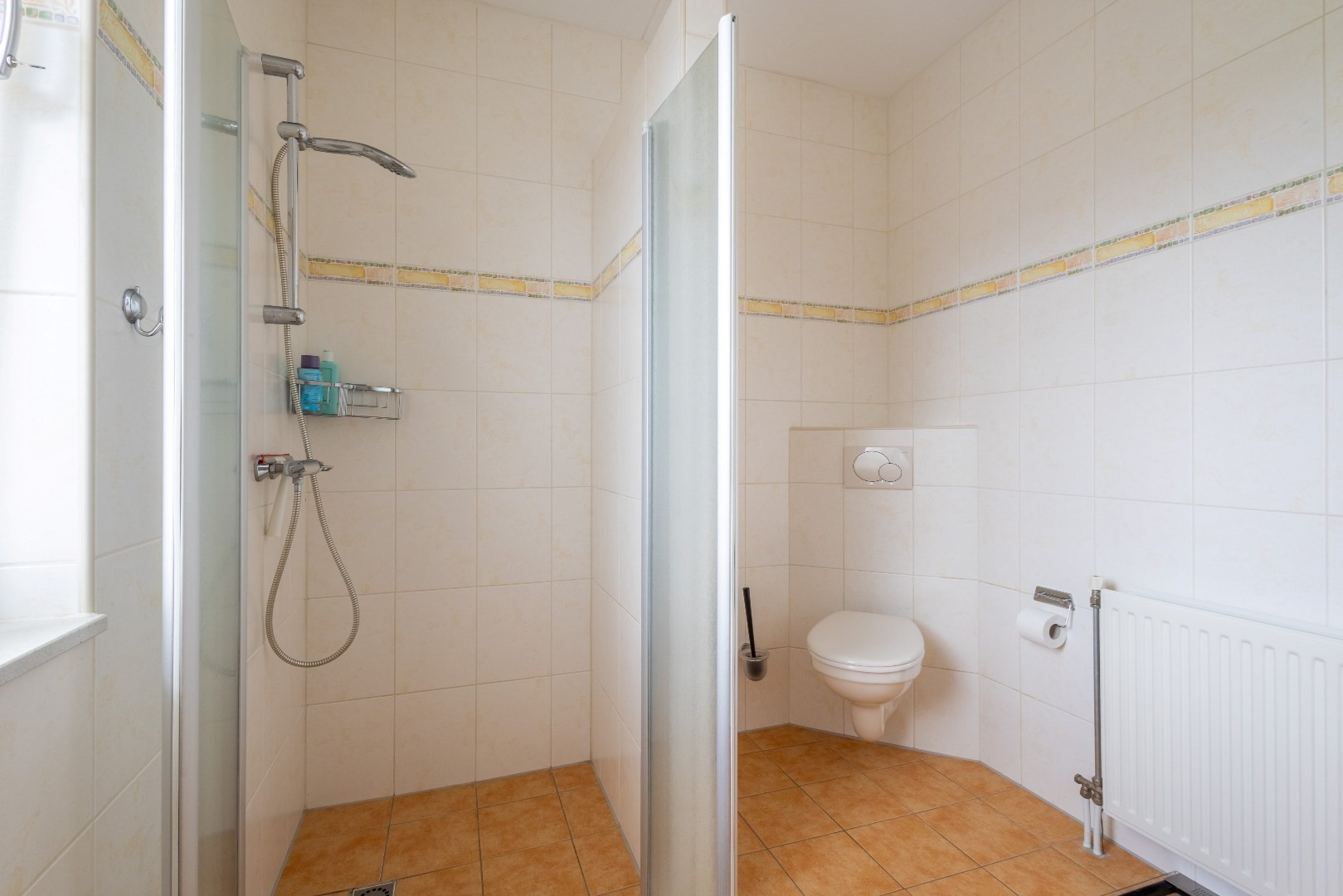 De lichte badkamer (2004) is voorzien van inloopdouche, wastafelmeubel, hangtoilet, radiator en vloerverwarming middels retourleiding.