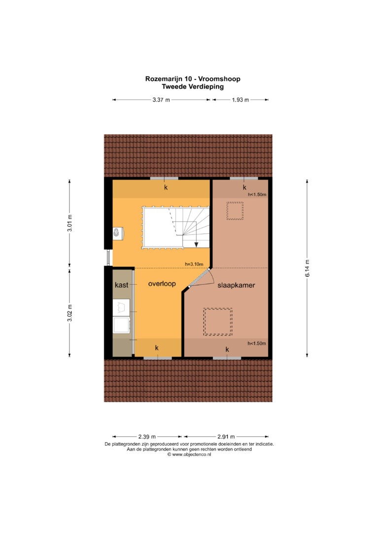 2e verdieping: overloop; 4e slaapkamer voorzien van verwarming en dakraam.